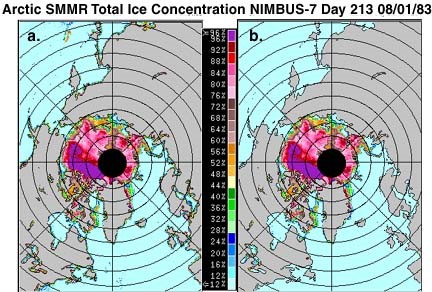 Une telle visualisation permet à des personnes non expertes de rapidement cerner l’enjeu de la disparition progressive des banquises aux pôles. Le constat est en effet indéniable dans la mesure ou l’on voit d’un rapide coup d’œil la diminution des surfaces océaniques couvertes de glace année après année. Cette diminution est encore plus flagrante à la fin de l’été, comme en Arctique où la superficie de la banquise était de 7,64 millions de km² pour le mois de septembre 1980, et de 3,57 millions en septembre 2012. Nous remarquons que les mois d’hiver comblent de moins en moins le déficit acquis lors des fontes qui s’amplifient au cours des mois chauds.*