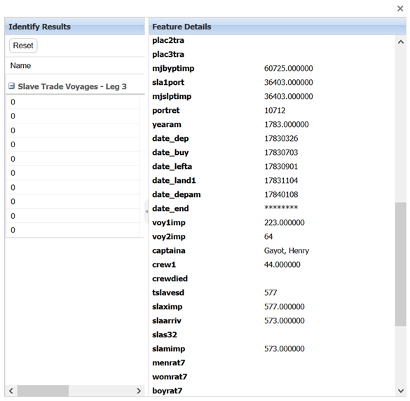 Presque 35 000 voyages sur 324 années ont été compilés pour la réalisation de la Trans-Atlantic Slave Trade Database. Ces données ont ensuite été géoréférencées pour pouvoir être intégrées dans la carte de la traite négrière portée par le projet WorldMap.