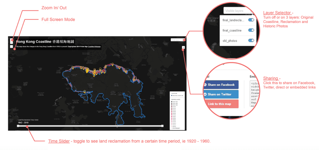 Par conséquent, la carte interactive « Hong Kong Coastline Map » représente une source d’information non négligeable pour donner un contexte spatial, temporel et historique à ces projets.