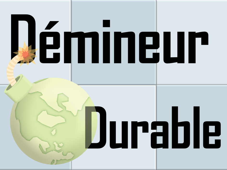 ![]() | Jouez et devinez la qualité de votre environnement Démineur Durable a pour but de faire prendre conscience de manière ludique, du changement anthropique, qui est une notion clé du développement durable. Ce changement anthropique sera abordé à travers deux thématiques : la qualité de l’air mais aussi la propreté des rues via les déchets sauvages. Mathilde Argoud, Axel Fourneyron, Corentin Martinez, Lucas Jean-Jacques