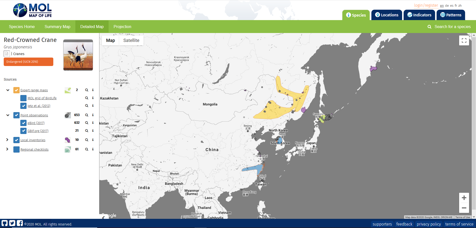 La documentation des données semble en effet avoir une grande importance au sein du projet Map of Life puisque toutes les sources des données sont clairement citées. Le site propose même une carte de la richesse des données par an et par pays et propose de visualiser les jeux de données utilisés dans l’ensemble du site. On peut ainsi retrouver des informations provenant d’avis d’experts, des partenaires ou même du GBIF (Système mondial d’information sur la biodiversité) qui permettent d’avoir des observations fiables à travers le monde entier.
