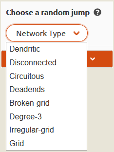 Enfin, un dernier mode est proposé, plus ludique, puisqu’il permet un « saut » aléatoire sur une ville, en se basant sur la sélection de l’un des huit types d’étalement urbain définis (Fig. 9 et 10).
