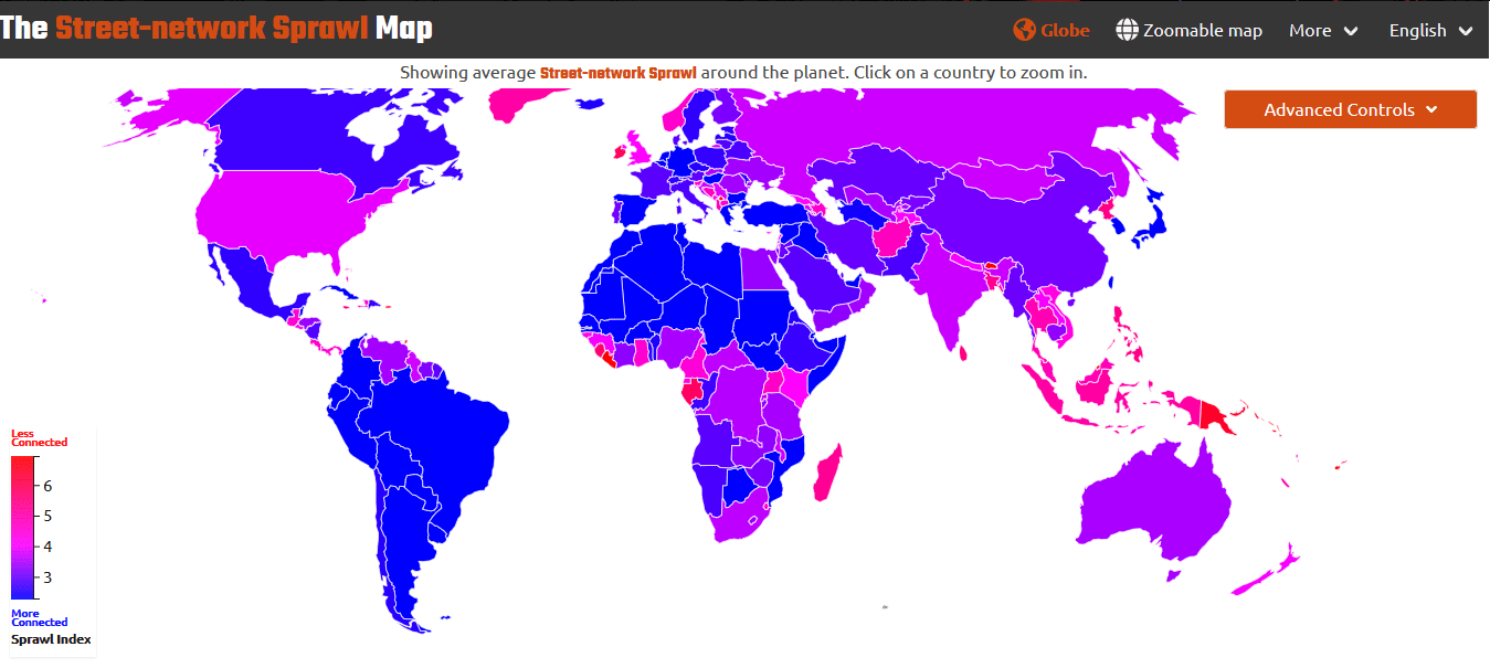 [2] Christopher Barrington-Leigh et Adam Millard-Ball, 2019. A global assessment of street-network sprawl. PLoS ONE, 14 (11). DOI: 10.1371/journal.pone.0210091.