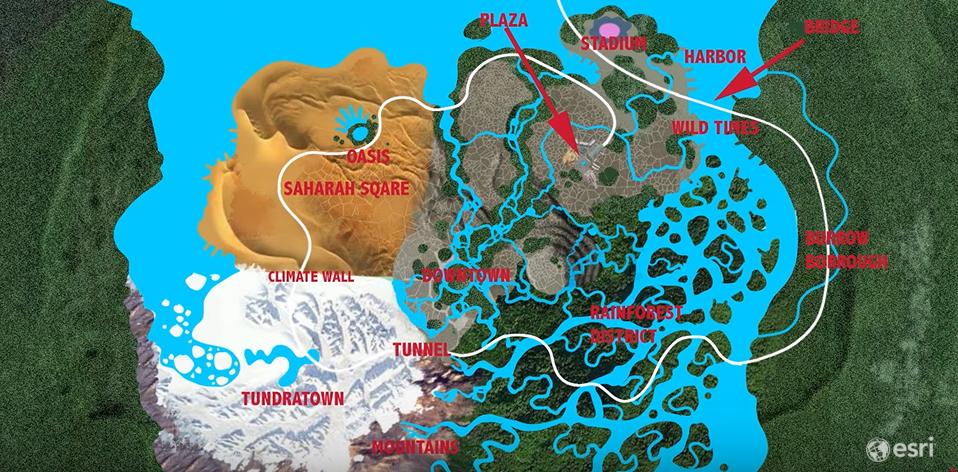Pour réaliser l’environnement de Zootopie les SIG ont été mis à profit dans 3 étapes majeures, à commencer par la création d’une carte combinant chaque biome de l’univers.