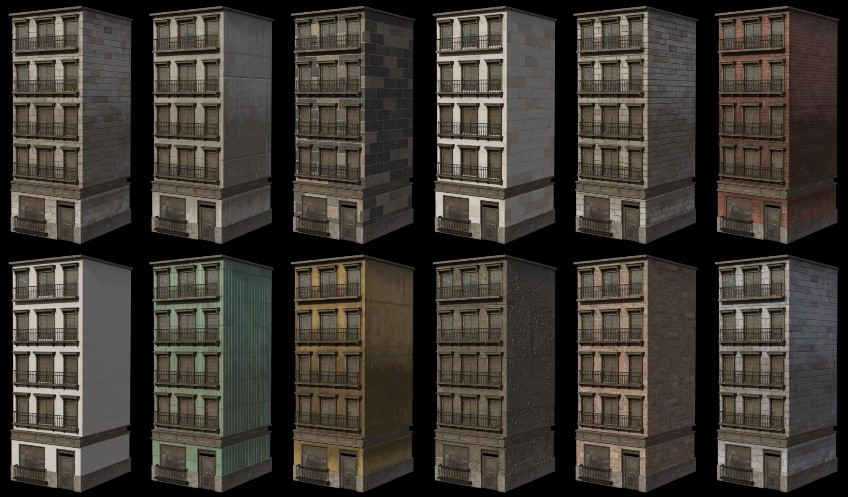 Les multiples bâtiments créés par l’équipe artistique ont ensuite été générés dans City Engine, toujours en suivant un certain nombre de critères permettant aux bâtiments d’être répartis sur la carte en fonction de leur taille, les plus petits vers les zones périphériques et les plus imposants dans le centre-ville.