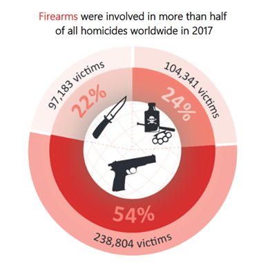 Compte tenu de leur taux de mortalité élevée, les armes à feu sont les armes les plus utilisées et ont été la cause de décès la plus courante dans les cas d’homicide dans le monde.