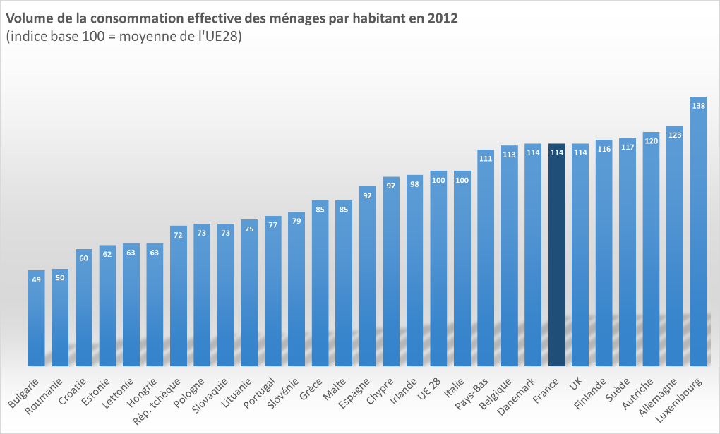 Insee, 2014. Consommation par habitant: la France au-dessus de la moyenne européenne.