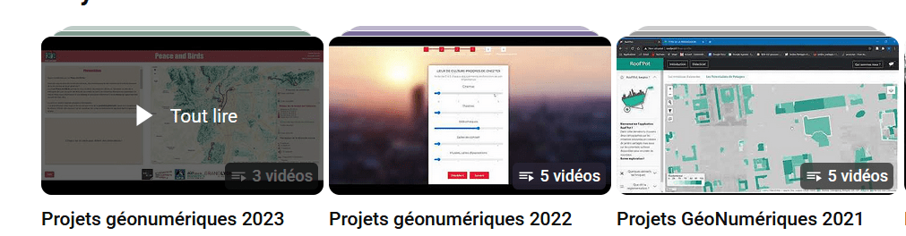 Mise en ligne des projets Géonumériques réalisés par les M2, promo 2025 Tous les projets des années précédentes sont présentés sur la chaîne youtu.be du Master Et retrouvez les derniers projets en ligne! Évaluer l’évolution du bâti à partir d’orthophotos : l’exemple d’un quartier en mouvement, la Part-Dieu , commandé par ERASME du Grand Lyon & ExoDev – Conception et réalisation (2025): Jules Chasson, Paul Goullencourt, Corentin Quesnel, Parfait Rafamatanantsoa (Master GeoNum) & Camille Roche-Autin, Romane Torre (Master Sentinelles) La perméabilité des sols en questions ! explorations sur le Grand Lyon commandé par ERASME du Grand Lyon & ExoDevConception et réalisation (2025): Lily Gentaz, Myriam Moustaid, Anatole Obriot (Master GeoNum) et Mathilde Bernard, Nicolas Charbonnet , Aloïs Lepera-Dumollard, (Master Sentinelles) Enquête sur le Tourisme Social et Solidaire en Auvergne-Rhône-Alpes commandé par l’UNAT « Le tourisme au service des hommes et des territoires »Conception et réalisation (2025): Emilie Chafaï, Morgane Gauthier, Julien Rohaut (Master GeoNum) & Anaïs Portela, Constance Suchel (Master Sentinelles) Accès au droit : Offre de justice et besoins des territoires commandé par l’Institut des Études et de Recherche sur le Droit et la JusticeConception et réalisation (2025): Rémi Membrède, Hassani Ridjali, Abdelrahim Zeghoudi, Adam Zobel (Master GeoNum) & Tanguy Chevrolat, Chloé Duval (Master Sentinelles) Un outil d’aide à l’implantation des médecins à Lyon commandé par le service de santé de la ville de LyonConception et réalisation (2025): Candice Marchand, Coline Puzin, Oscar Uhry (Master GeoNum) & Flavie Chalaud, Salomé Mesure (Master Sentinelles) Perceptions des risques à Fukushima commandé par le Projet DILEM (M.Augendre, C.Cunty, H.Mathian /EVS)Conception et réalisation (2024): Bastien Ribeyre, Etienne Rousseau, Gwennaël Petavy, Julien Sauvinet (Master Geonum) avec la collaboration de Akémi Lamarche-Vadel, Manon Leforestier (Master Sentinelles) Où planter à Villeurbanne? commandé par le service géomatique de la Mairie de Villeurbanne (C.Bijon, C.Dodane)Conception et réalisation (2024): Annaëlle Lanceart, Matheus Gimenez Saraiva, Nathan Radondy,Pierre Laroumanie (Master GeoNum) avec la collaboration de Caroline Catelin, Maurine Di Tommaso (Master Sentinelles) Partager : Cliquer pour partager sur X(ouvre dans une nouvelle fenêtre) X Cliquez pour partager sur Facebook(ouvre dans une nouvelle fenêtre) Facebook J’aime chargement… Laisser un commentaire Annuler la réponse. Δ