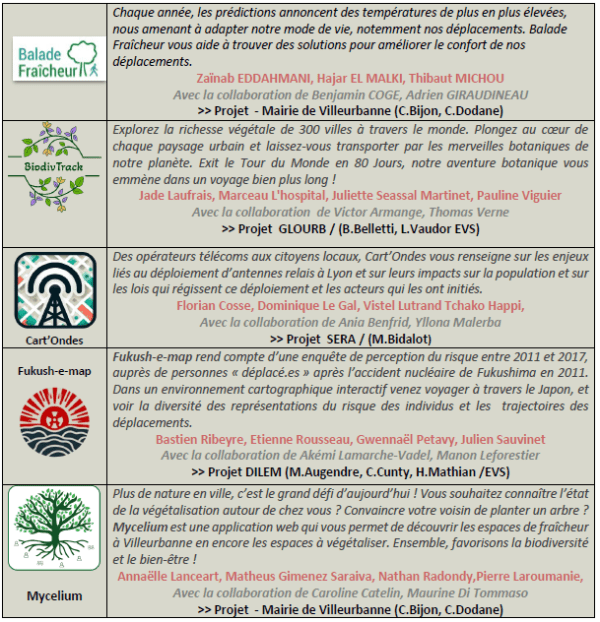 Les masters 2 GéoNum et Sentinelles vous présentent les applications cartoweb qu'ils ont conçues pour des commanditaires. Rejoignez nous ! >> Univ Lyon3- Berges du Rhône- salle A21 bâtiment Athéna, au 7 rue Chevreul ->> …ou en visio ICI ET Retrouvez les projets des années précédentes sur la chaîne youtu.be du Master